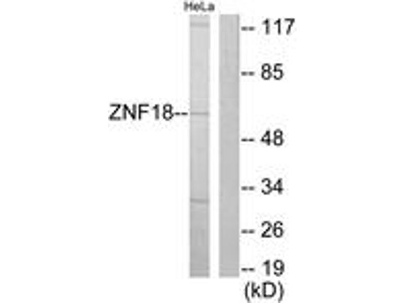 - The antiserum was produced against synthesized peptide derived from human ZNF18.