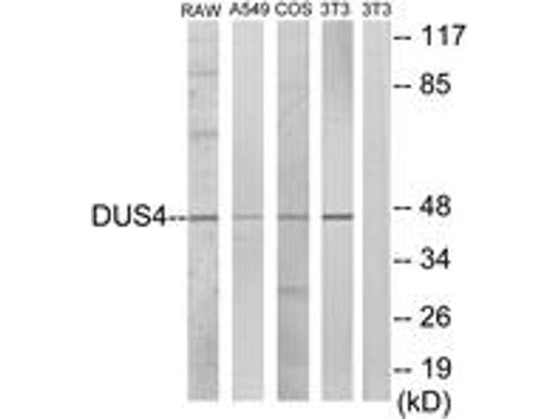 - The antiserum was produced against synthesized peptide derived from human DUSP4.