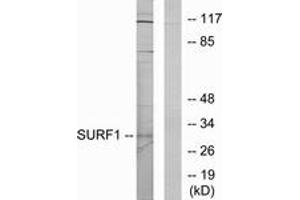 SURF1 Antibody detects endogenous levels of total SURF1 protein.