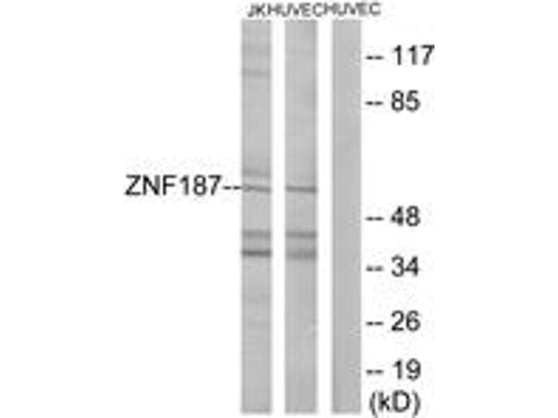 - The antiserum was produced against synthesized peptide derived from human ZNF187.