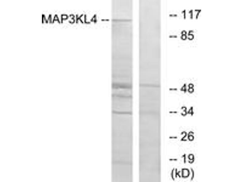 - The antiserum was produced against synthesized peptide derived from human MAP3KL4.
