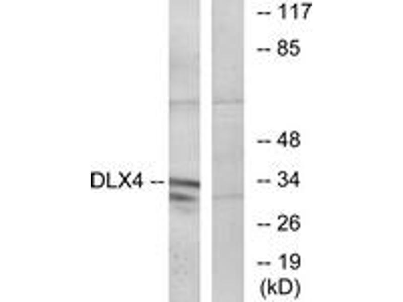 DLX4 Antibody detects endogenous levels of total DLX4 protein.