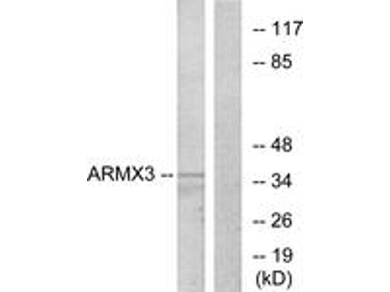 - The antiserum was produced against synthesized peptide derived from human ARMX3.