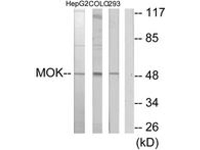 - The antiserum was produced against synthesized peptide derived from human MOK.