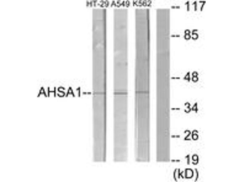 - The antiserum was produced against synthesized peptide derived from human AHSA1.