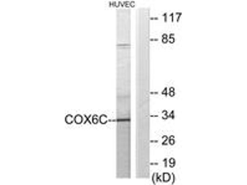 - The antiserum was produced against synthesized peptide derived from human COX6C.