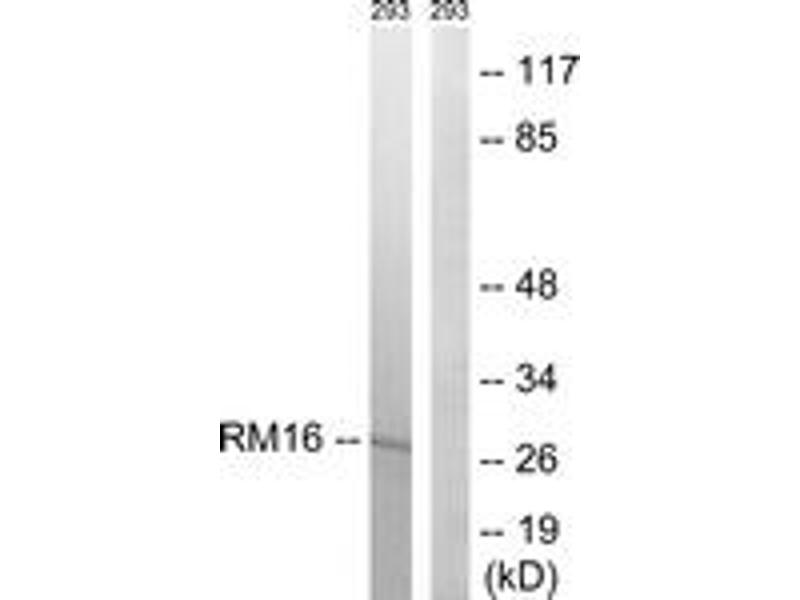 - The antiserum was produced against synthesized peptide derived from human MRPL16.