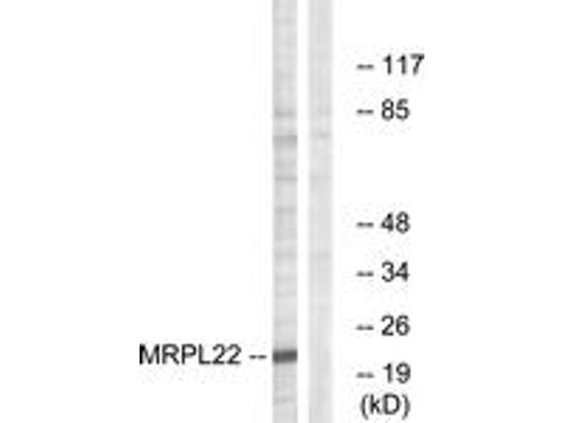 - The antiserum was produced against synthesized peptide derived from human MRPL22.