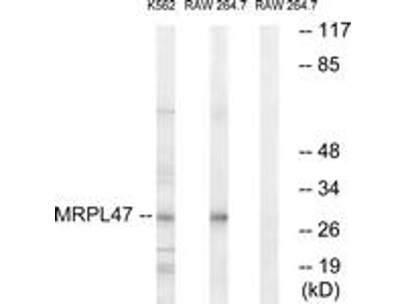 - The antiserum was produced against synthesized peptide derived from human MRPL47.