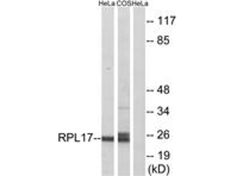 - The antiserum was produced against synthesized peptide derived from human RPL17.