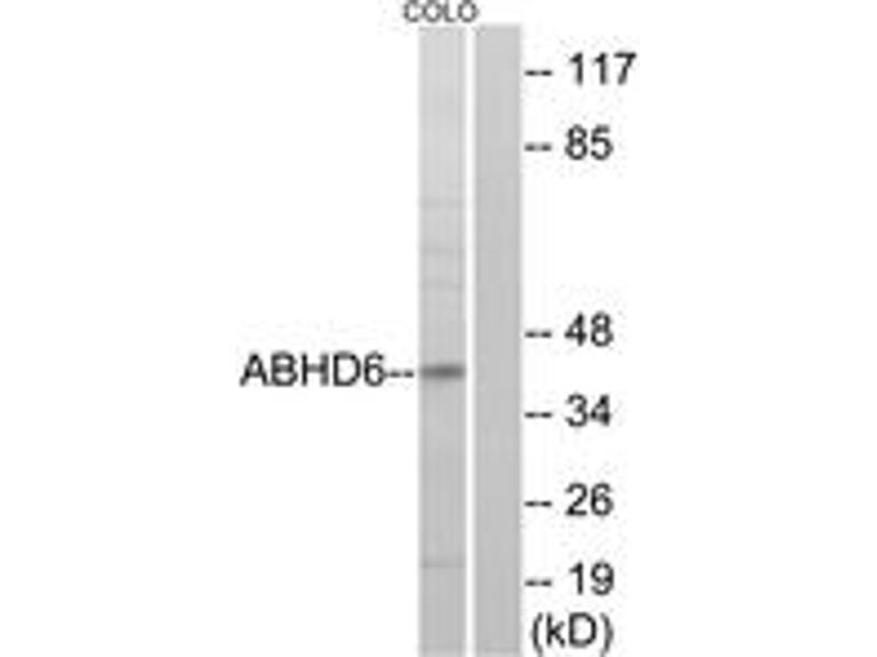 ABHD6 Antibody detects endogenous levels of total ABHD6 protein.