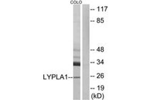 LYPLA1 Antibody detects endogenous levels of total LYPLA1 protein.