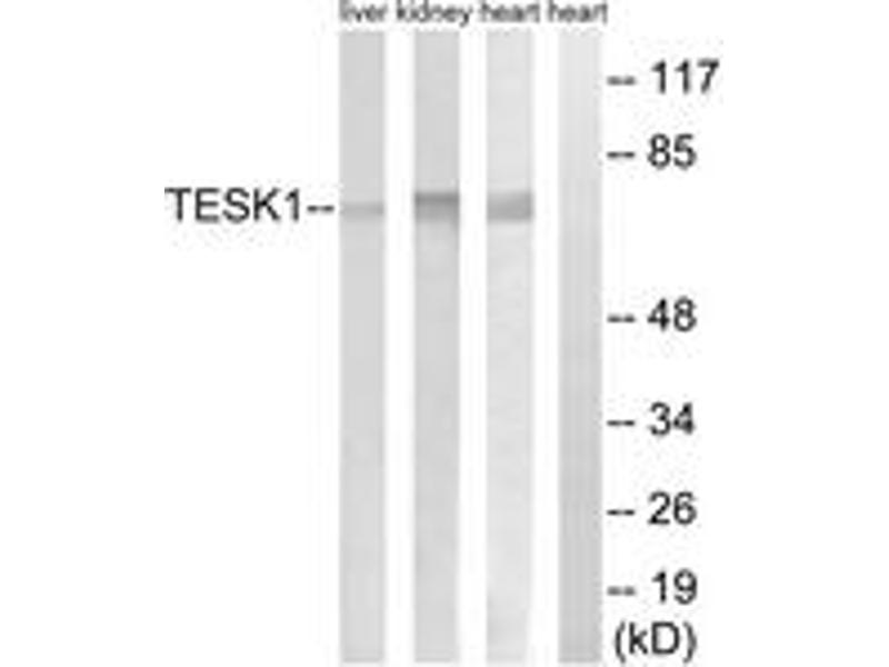 TESK1 Antibody detects endogenous levels of total TESK1 protein.