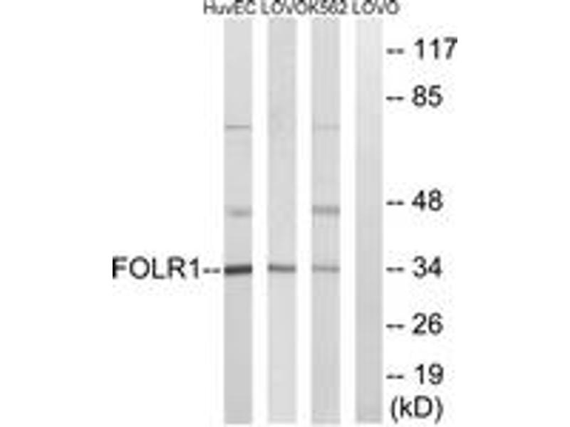 FOLR1 Antibody detects endogenous levels of total FOLR1 protein.