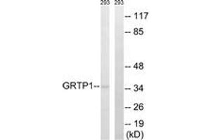 - The antiserum was produced against synthesized peptide derived from human GRTP1.