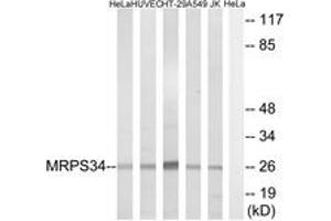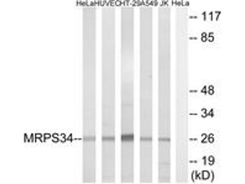 - The antiserum was produced against synthesized peptide derived from human MRPS34.
