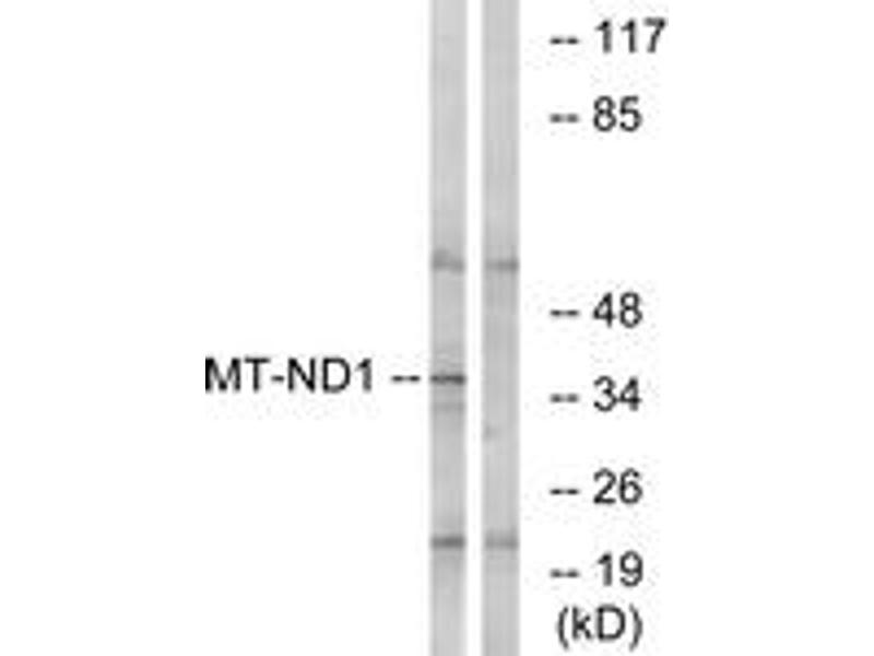 - The antiserum was produced against synthesized peptide derived from human MT-ND1.