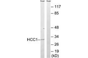 HCC1 Antibody detects endogenous levels of total HCC1 protein.