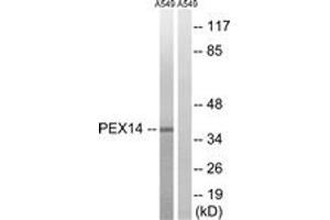 PEX14 Antibody detects endogenous levels of total PEX14 protein.