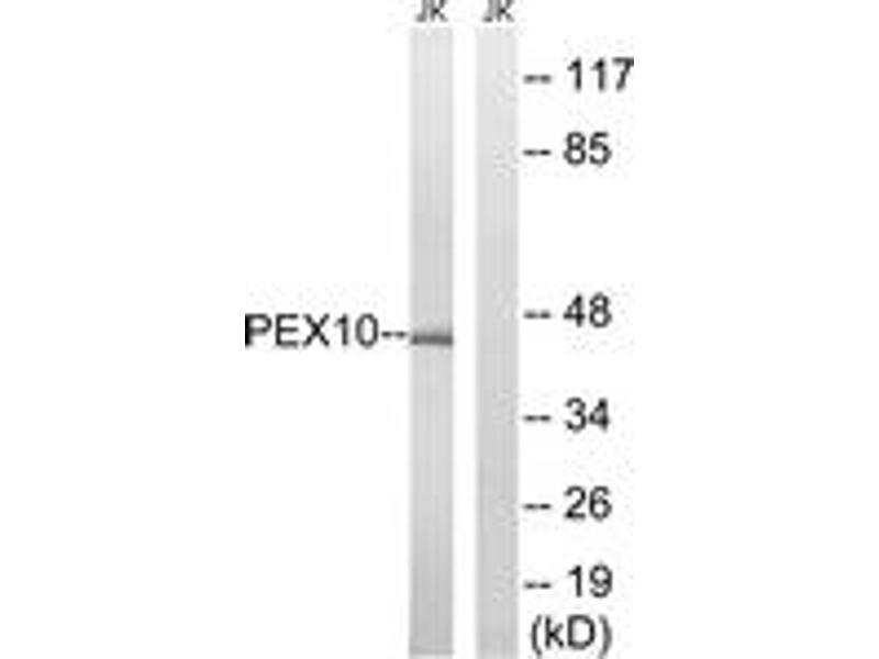 - The antiserum was produced against synthesized peptide derived from human PEX10.