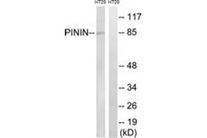 Synonyms: Pinin,140 kDa nuclear and cell adhesion-related phosphoprotein, Domain-rich serine protein, DRS protein, DRSP, Melanoma metastasis clone A protein, Desmosome-associated protein, SR-like protein, Nuclear protein SDK3