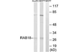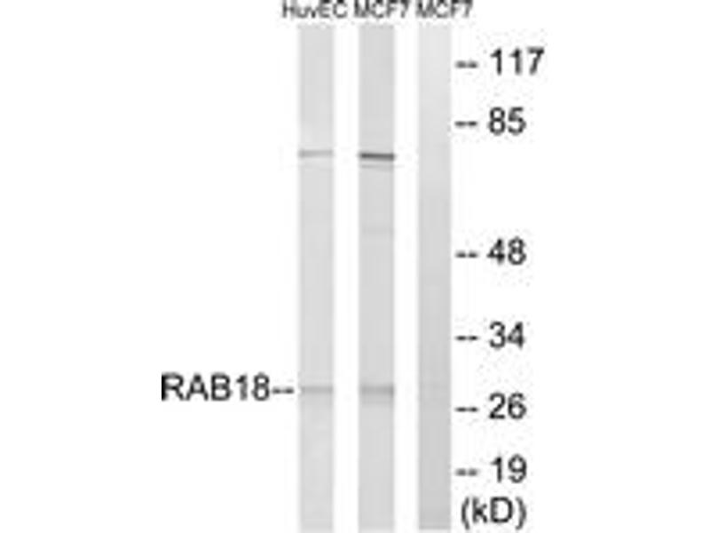 - The antiserum was produced against synthesized peptide derived from human RAB18.