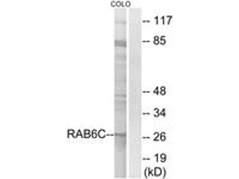 - The antiserum was produced against synthesized peptide derived from human RAB6C.
