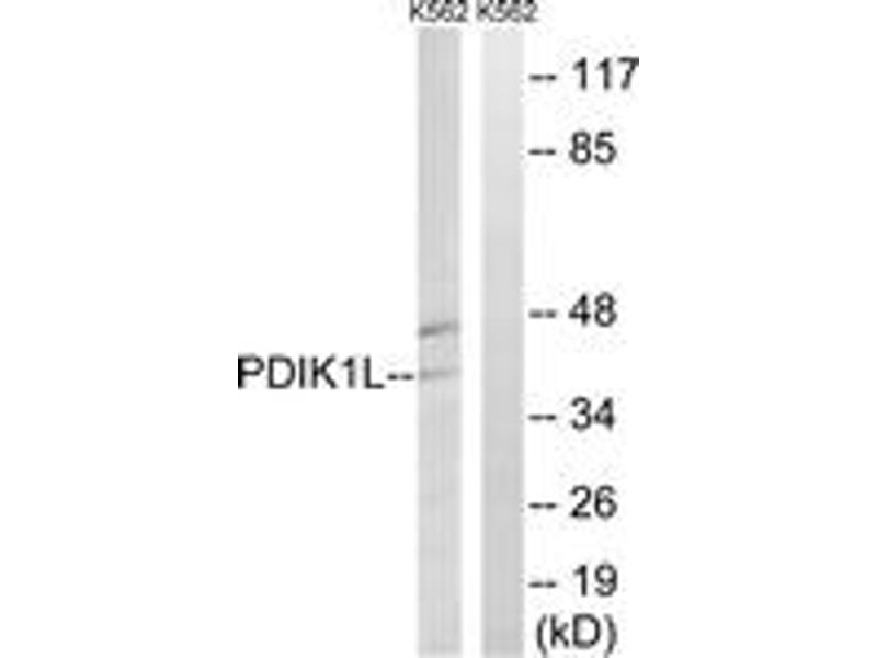 - The antiserum was produced against synthesized peptide derived from human PDIK1L.