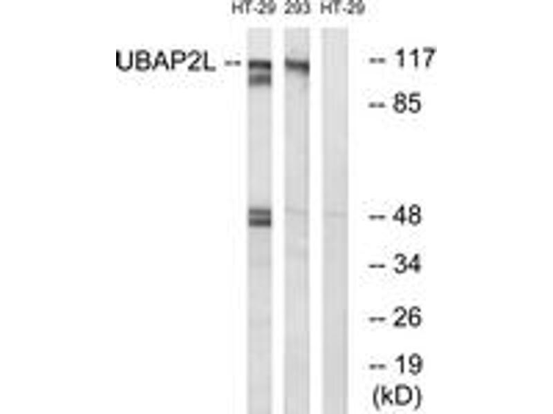 - The antiserum was produced against synthesized peptide derived from human UBAP2L.