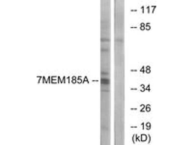 - The antiserum was produced against synthesized peptide derived from human TMEM185A.