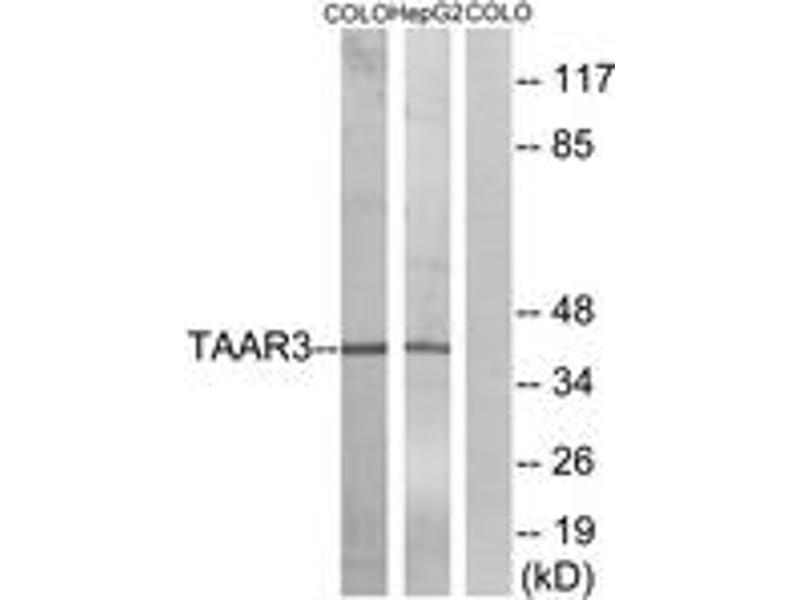 TAAR3 Antibody detects endogenous levels of total TAAR3 protein.