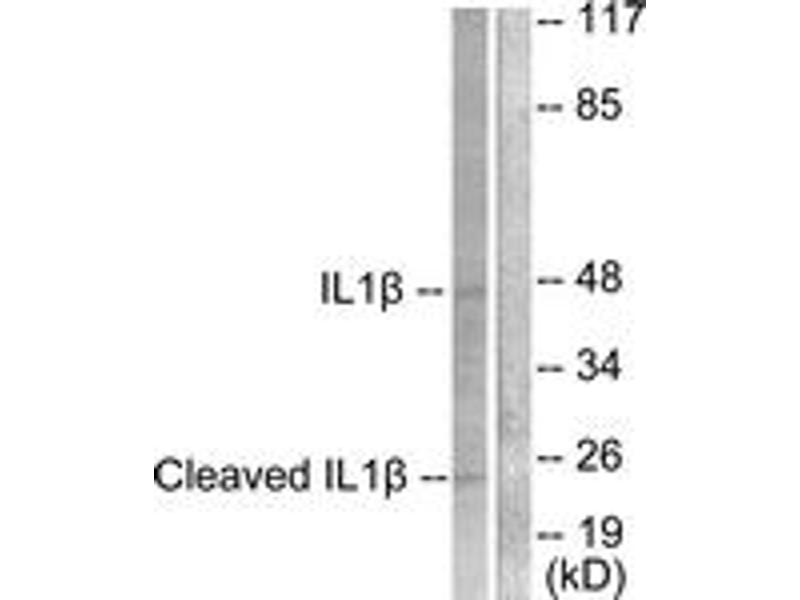 IL-1 beta (Cleaved-Asp210) Antibody detects endogenous levels of fragment of activated IL-1 beta resulting from cleavage adjacent to Asp210.