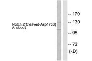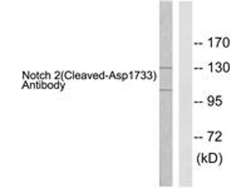 Notch 2 (Cleaved-Asp1733) Antibody detects endogenous levels of fragment of activated Notch 2 resulting from cleavage adjacent to Asp1733.
