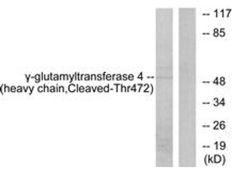 Gamma-glutamyltransferase 4 (heavy chain,Cleaved-Thr472) Antibody detects endogenous levels of fragment of activated Gamma-glutamyltransferase 4 resulting from cleavage adjacent to Thr472.
