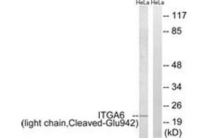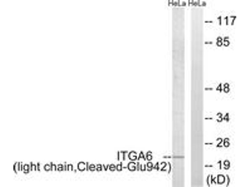 ITGA6 (light chain,Cleaved-Glu942) Antibody detects endogenous levels of fragment of activated ITGA6 resulting from cleavage adjacent to Glu942.