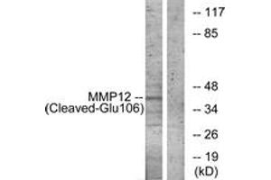 MMP12 (Cleaved-Glu106) Antibody detects endogenous levels of fragment of activated MMP12 resulting from cleavage adjacent to Glu106.