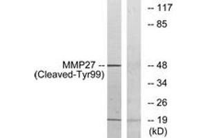 MMP27 (Cleaved-Tyr99) Antibody detects endogenous levels of fragment of activated MMP27 resulting from cleavage adjacent to Tyr99.