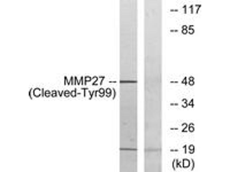 MMP27 (Cleaved-Tyr99) Antibody detects endogenous levels of fragment of activated MMP27 resulting from cleavage adjacent to Tyr99.