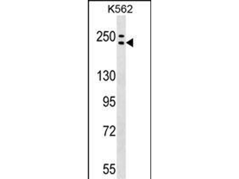 This ADCY9 antibody is generated from rabbits immunized with a KLH conjugated synthetic peptide between 1295-1323 amino acids from the C-terminal region of human ADCY9.