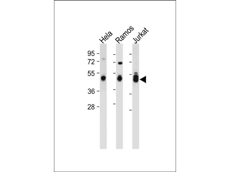 This MAT2A antibody is generated from rabbits immunized with a KLH conjugated synthetic peptide between 27-55 amino acids from the N-terminal region of human MAT2A.