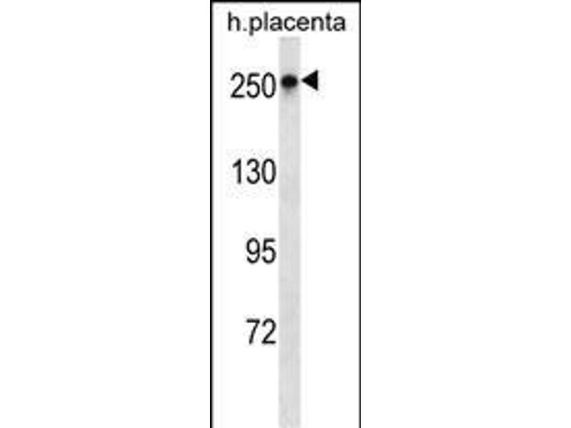 This SCRIB antibody is generated from rabbits immunized with a KLH conjugated synthetic peptide between 382-410 amino acids from the N-terminal region of human SCRIB.