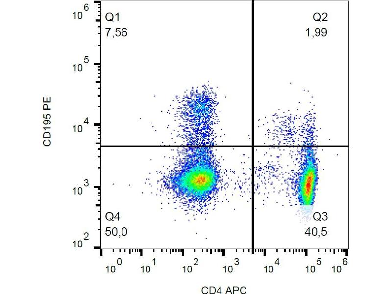 Der PE-konjugierte Maus Monoklonal anti-CCR5 Antikörper (Klon T21-8) (ABIN1558086) detektiert spezifisch CCR5 in FACS.