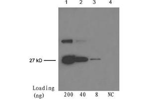 The investigator must determine the ideal working concentration for each specific application. We have not yet determined the suitability of this antibody for applications other than those listed below. The ideal working concentration must take into account such factors as secondary antibody affinity, antigen concentration, sensitivity of the detection method, temperature, and length of incubationsELISA: 0.1-1.0 µg/mL Western blot: 1.0-2.0 µg/mLWestern blot using ONE-HOUR WesternTM Kit: For quick results, ONE-HOUR WesternTM Kit is recommendet. 4 µg of this antibody is mixed with 4 mL of WB solution. Other applications: user-optimized