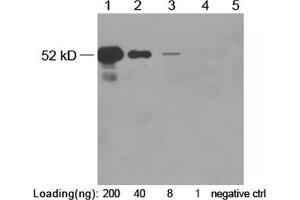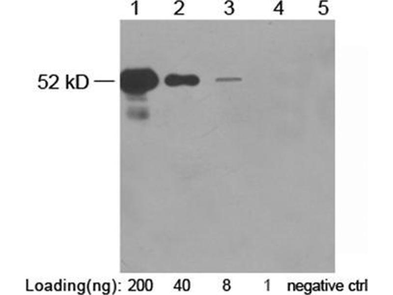 ELISA: 0.05-0.2 µg/mL Western blot: 0.1-1.0 µg/mLWestern Blot Using ONE-HOUR WesternTM Kit: For quick results, ONE-HOUR WesternTM Kit is recommendet. 10 µg of this antibody is mixed with 10 mL of WB solution for 8 cm x 8 cm membrane.Immunoprecipitation (IP): 2-10 µg/mg of lysateOther applications: user-optimized