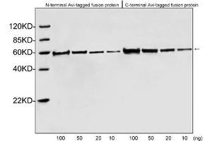 Well-characterized antibodies for epitope tags have been widely used in the study of protein expression in various systems. The Avi tag is a biotin-acceptor peptide1, GLNDIFEAQKIEWHE. The 15-residue peptide served as a substrate mimic for biotin ligase (BirA), which usually recognizes the much larger protein domain. Rabbit Anti-Avi-tag Polyclonal Antibody is developed in rabbit using a synthetic Avi tag peptide conjugated to KLH.