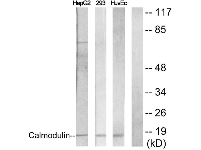 - The antiserum was produced against synthesized non-phosphopeptide derived from human Calmodulin around the phosphorylation site of threonine 79 and serine 81 (K-D-TP-D-SP-E-E).