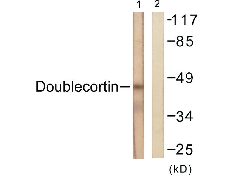 Doublecortin (Ab-297) antibody detects endogenous levels of total Doublecortin protein.