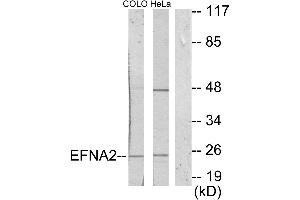 - EFNA2 antibody detects endogenous levels of total EFNA2 protein.