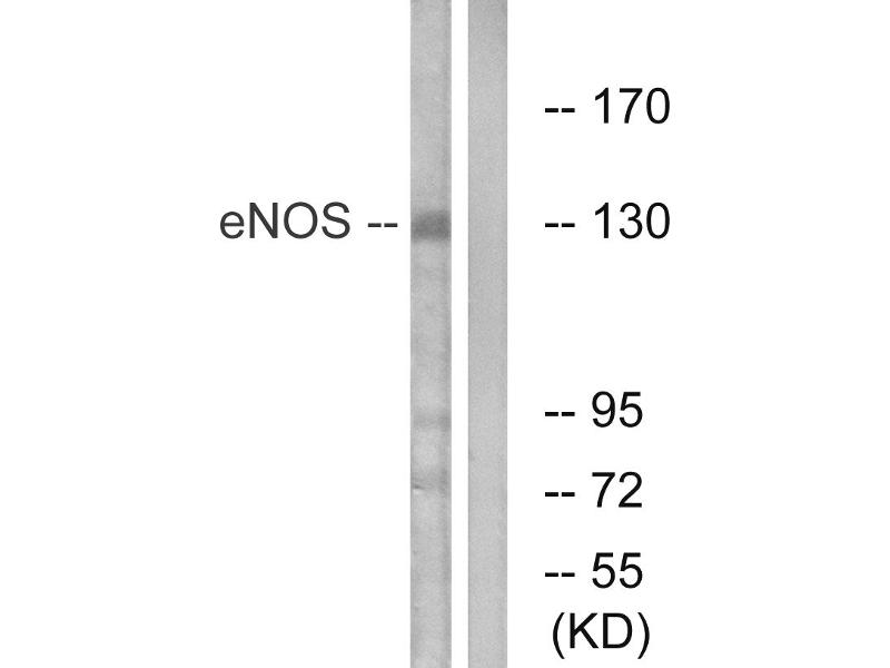 ENOS (Ab-615) antibody detects endogenous levels of total eNOS protein.
