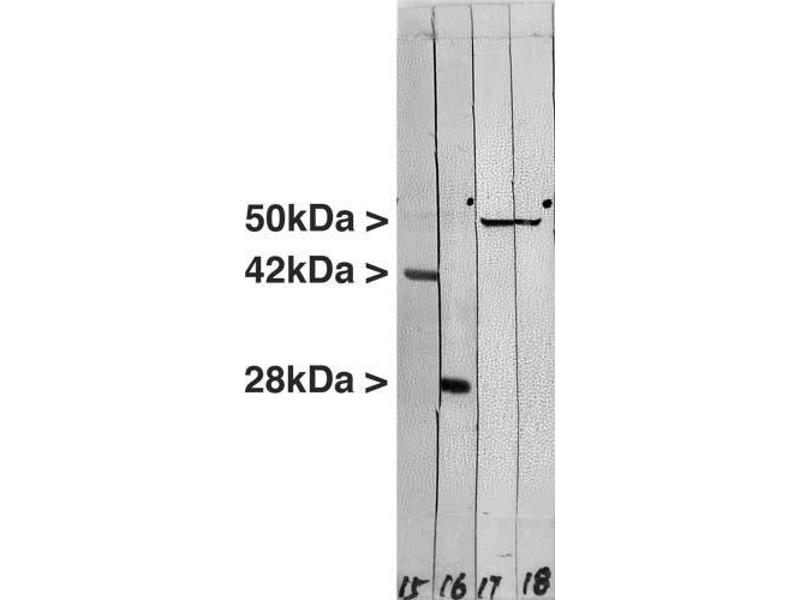 - The antibody solution can be used at dilutions of at least 1:1,000 in immunofluorescence experiments. In western blotting using chemiluminescence it can be used at dilutions of 1:10,000 or lower.